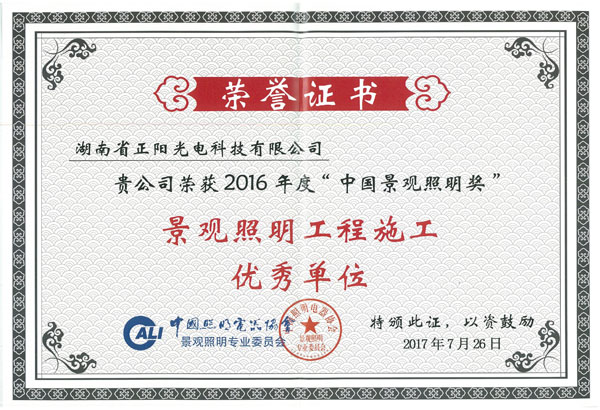 湖南省正陽光電科技有限公司是一家從事亮化工程及大型燈光藝術的設計、制作、安裝和維護于一體的專業化公司。公司資質齊全、管理嚴謹、技術先進、實力雄厚,取得了城市及道路照明工程專業承包壹級資質、照明工程設計專項甲級資質、國家高新技術企業、國家“重質量·守誠信”示范企業。